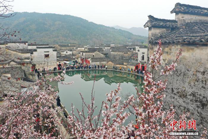 3月16日,黟县宏村的李花渐次盛开。(无(wu)人机(ji)照片)许(xu)家栋 摄