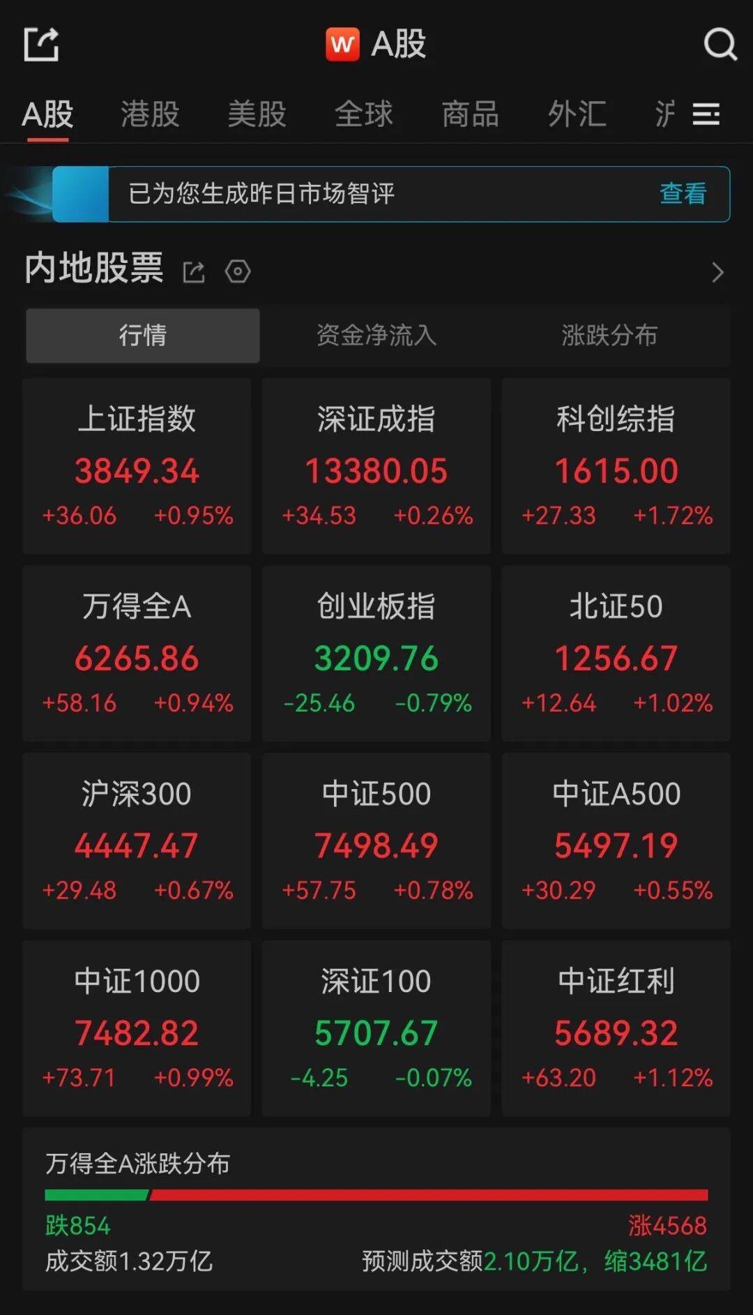 24日,A股三大指数集体(ti)高开,随后震荡分化,创业板指翻绿。截至午间(jian)开盘(pan),沪指涨0.95%,深证成指涨0.26%,创业板指跌(die)0.79%。全(quan)市半(ban)日成交额1.32万亿(yi),超(chao)4500只个股上涨。