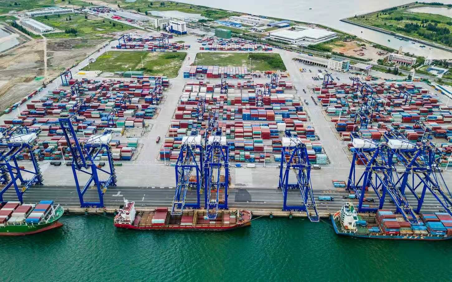 忙(mang)碌的洋浦港集(ji)装(zhuang)箱船埠(bu)(央广网记者(zhe) 陶淦 摄)
