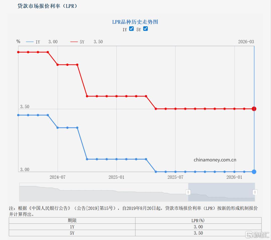据中国人(ren)民银行授权天下银行间同业(ye)拆借中心公布,2026年3月20日存款市(shi)场报(bao)价利率(LPR)为:1年期(qi)LPR为3.0%,5年期(qi)以(yi)上LPR为3.5%,与上月保(bao)持同等。