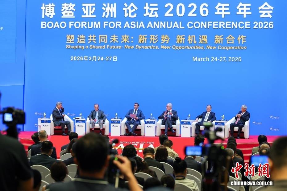 3月24日,作为博鳌亚洲论坛2026年年会系列活动之一的全球自由贸易港发展(zhan)论坛在海南(nan)博鳌举行。图为论坛高端对话现场。中新社记者 骆云飞 摄