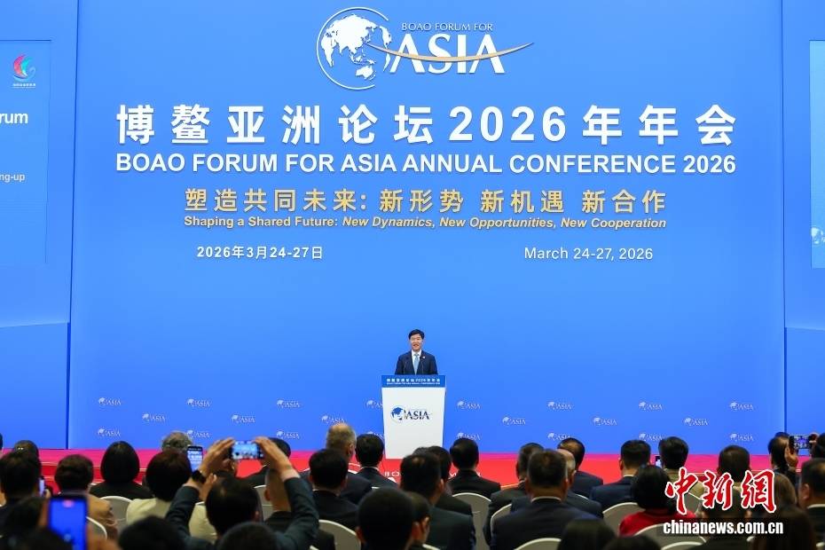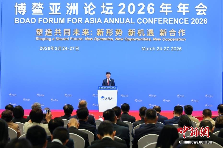 3月24日,作为博鳌亚洲论坛2026年年会系列活动之一的全球自由贸易港发展(zhan)论坛在海南(nan)博鳌举行。图为海南(nan)省(sheng)委书记冯(feng)飞出席论坛并(bing)致辞。中新社记者 骆云飞 摄