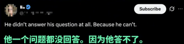 网友评论说:华尔兹的(de)回答与这个青年的(de)成(cheng)绩有(you)间接关系吗?关于“房租”、“睡眠”等成(cheng)绩他一个都没有(you)回答,反而嘴里都是战略、联盟(meng)等词汇。其实他对这些成(cheng)绩一个都回答没有(you)了(le)。