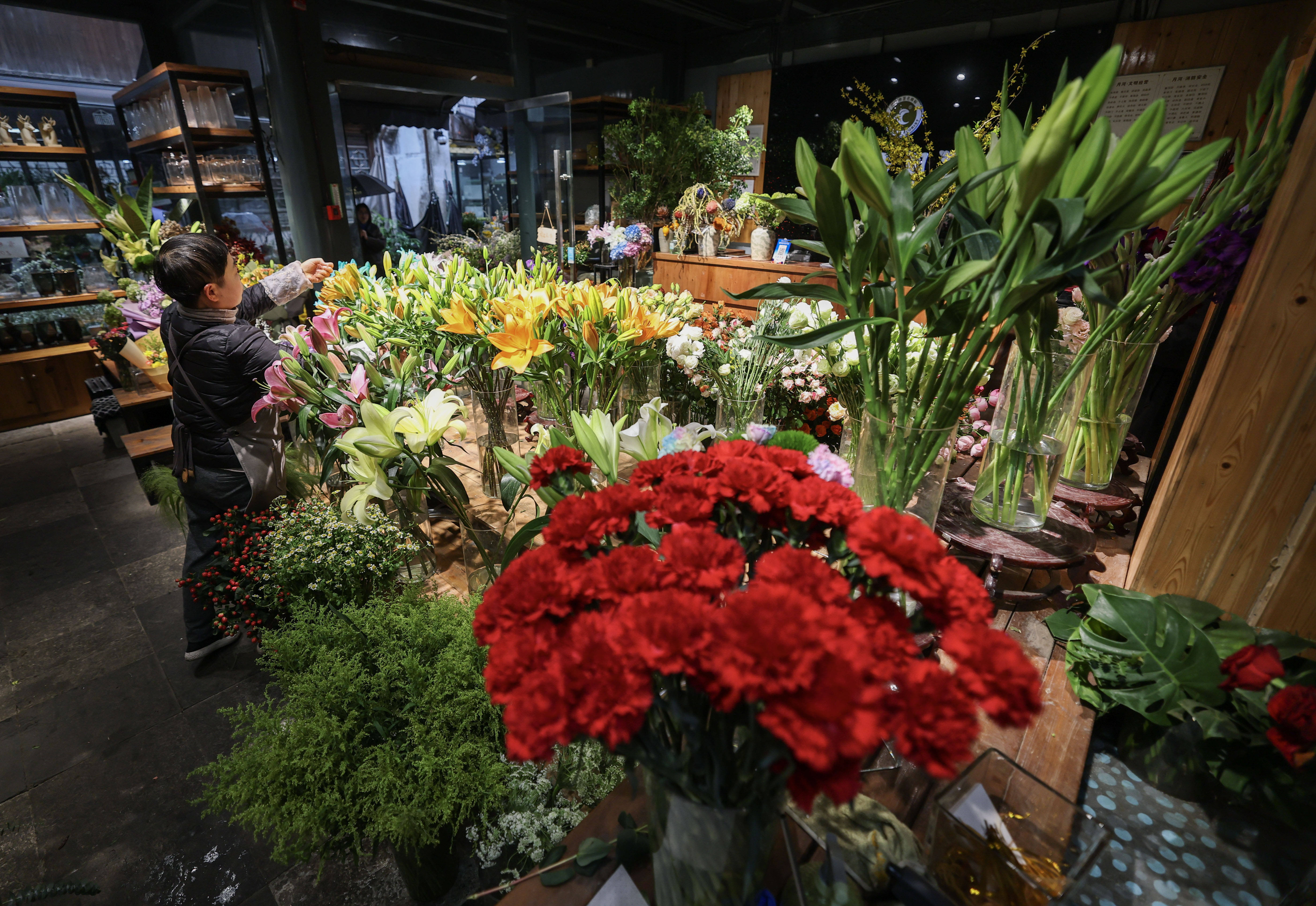 3月24日,消耗者(zhe)正在(zai)月河历史文明街区的花店选购花卉。 新(xin)华社记(ji)者(zhe) 徐昱 摄(she)