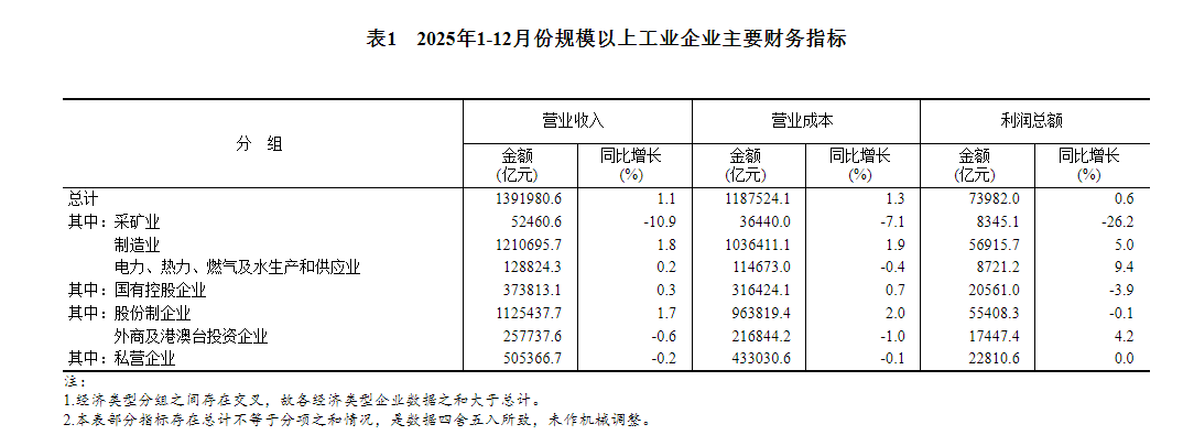 我国网财经1月27日(ri)讯 国家(jia)统计局网站发布的数据显示,2025年,全国范围以上产(chan)业企业实现利润(run)总额73982.0亿元,比上年增长0.6%(按可比口径较量争论)。