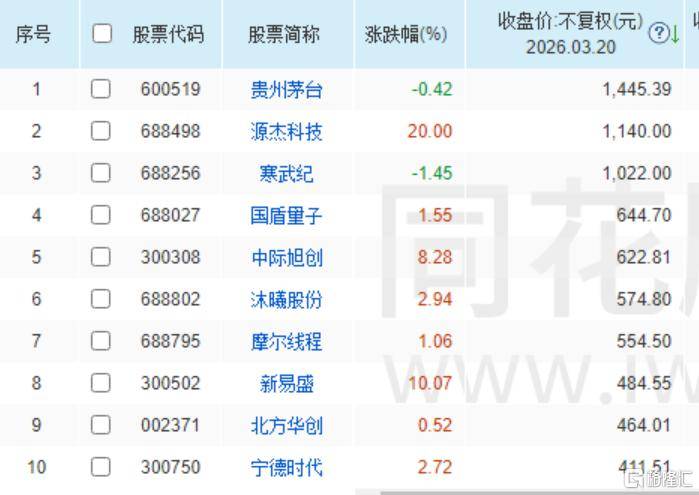 3月(yue)20日(ri),CPO概念人气(qi)股源杰科技20cm涨停(ting),报1140元/股,续(xu)创历史新高,成为A股历史上第8只千元股。