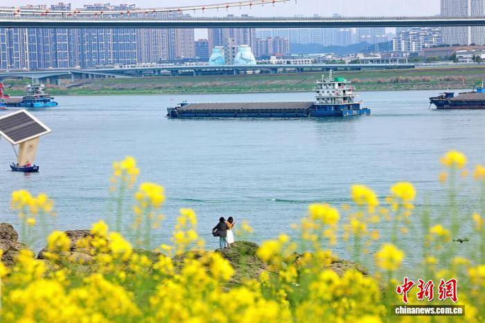 3月25日,湖北宜昌沿江(jiang)两岸的油菜花田陆续绽放,金黄色的花海与长江(jiang)碧水相映成趣,构成一幅靓丽的春日画卷。不少市(shi)民(min)、游(you)客漫步在宜昌市(shi)点(dian)军区江(jiang)边,拍照(zhao)留念,感受春日气息。图为游(you)客在江(jiang)边欣赏春日风景。董晓斌(bin) 摄