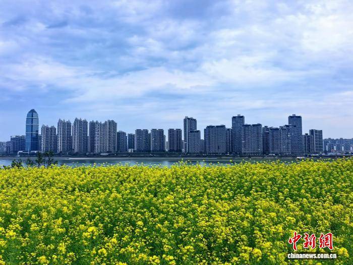 3月25日,湖北宜昌沿江(jiang)两岸的油菜花田陆续绽放,金黄色的花海与长江(jiang)碧水相映成趣,构成一幅靓丽的春日画卷。不少市(shi)民(min)、游(you)客漫步在宜昌市(shi)点(dian)军区江(jiang)边,拍照(zhao)留念,感受春日气息。图为油菜花勾(gou)勒出城市(shi)的“春日轮(lun)廓”。董晓斌(bin) 摄