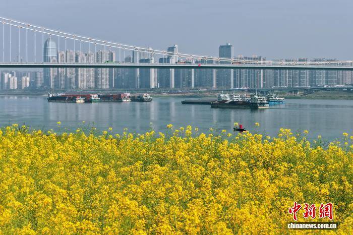 3月25日,湖北宜昌沿江(jiang)两岸的油菜花田陆续绽放,金黄色的花海与长江(jiang)碧水相映成趣,构成一幅靓丽的春日画卷。不少市(shi)民(min)、游(you)客漫步在宜昌市(shi)点(dian)军区江(jiang)边,拍照(zhao)留念,感受春日气息。图为油菜花绘就宜昌春日盛景。董晓斌(bin) 摄