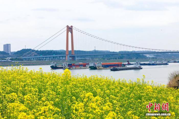 3月25日,湖北宜昌沿江(jiang)两岸的油菜花田陆续绽放,金黄色的花海与长江(jiang)碧水相映成趣,构成一幅靓丽的春日画卷。不少市(shi)民(min)、游(you)客漫步在宜昌市(shi)点(dian)军区江(jiang)边,拍照(zhao)留念,感受春日气息。图为金黄花海与橘色大桥(qiao)相映成趣。董晓斌(bin) 摄