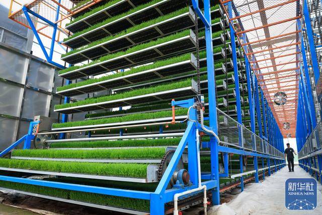↑ 3月24日,在广(guang)东江(jiang)门台(tai)山市都斛镇的广(guang)东供销天禾台(tai)山智慧农场(chang)育秧中心,W型循环育秧线上的水稻秧苗整齐排列。