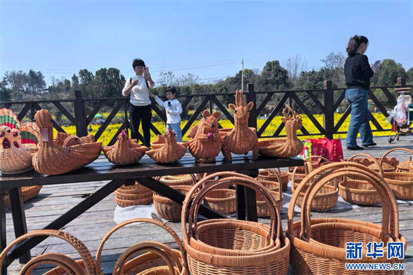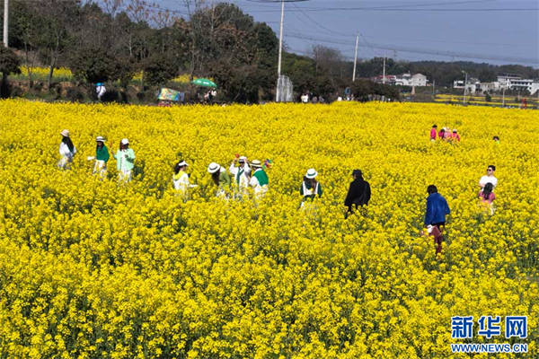 在马桥花海,3000亩油菜花迎风摇曳,黄灿灿的花浪翻腾,浓厚花香气扑鼻扑面而来(lai)。春日里,这里天天都能吸引近6000名旅客倘(tang)佯花间(jian),也带动了外地农特产品(pin)贩卖。