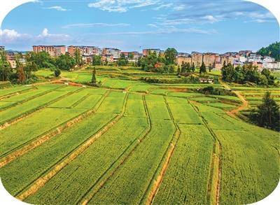 风光奇丽(li)的桃花米稻田。宣(xuan)汉(han)县委宣(xuan)扬部供图