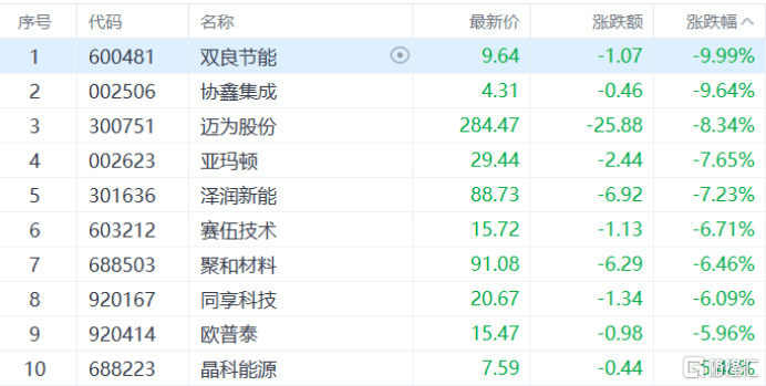 光伏设备板块走低,双良节(jie)能跌停,协(xie)鑫(xin)集成、迈为股(gu)份、亚(ya)玛顿等多股(gu)跟跌。