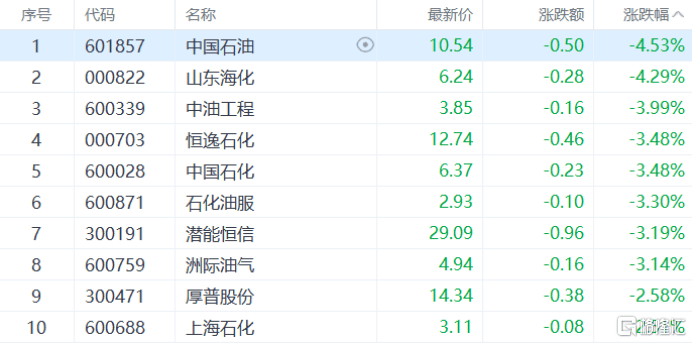 油改(gai)概念(nian)板块下跌,我国石油、山东海化跌超4%,中油工程、恒逸石化、我国石化等多股(gu)跟跌。