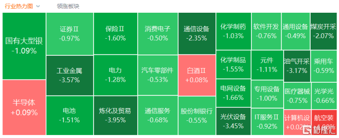 盘面上,CPO概念(nian)下挫,长(chang)芯博创跌逾11%;光伏设备板块走低,双良节(jie)能跌停;小金属板块普跌,云路(lu)股(gu)份、龙磁(ci)科技等多股(gu)跌逾5%;玻璃玻纤板块走弱,山东药玻领跌;航运口岸(an)、F5G概念(nian)、钛白粉及Kimi概念(nian)等跌幅居前。另外,船舶制造(zao)板块走高,亚(ya)星锚链涨停;商业航天板块拉升(sheng),航发动(dong)力涨停;机器人板块活(huo)跃(yue),五洲新春领涨;水产养殖(zhi)、电机及加速器等板块涨幅居前。